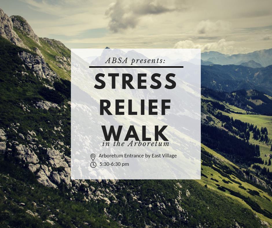 Midterms got you down? Join the Animal Biology Students’ Association for a Stress Relief Walk in the Arboretum! This is a free event, and is a great opportunity to relax and unwind from school. We will be meeting the entrance to the Arboretum by the East Village at 5:30pm. Please dress for the weather!