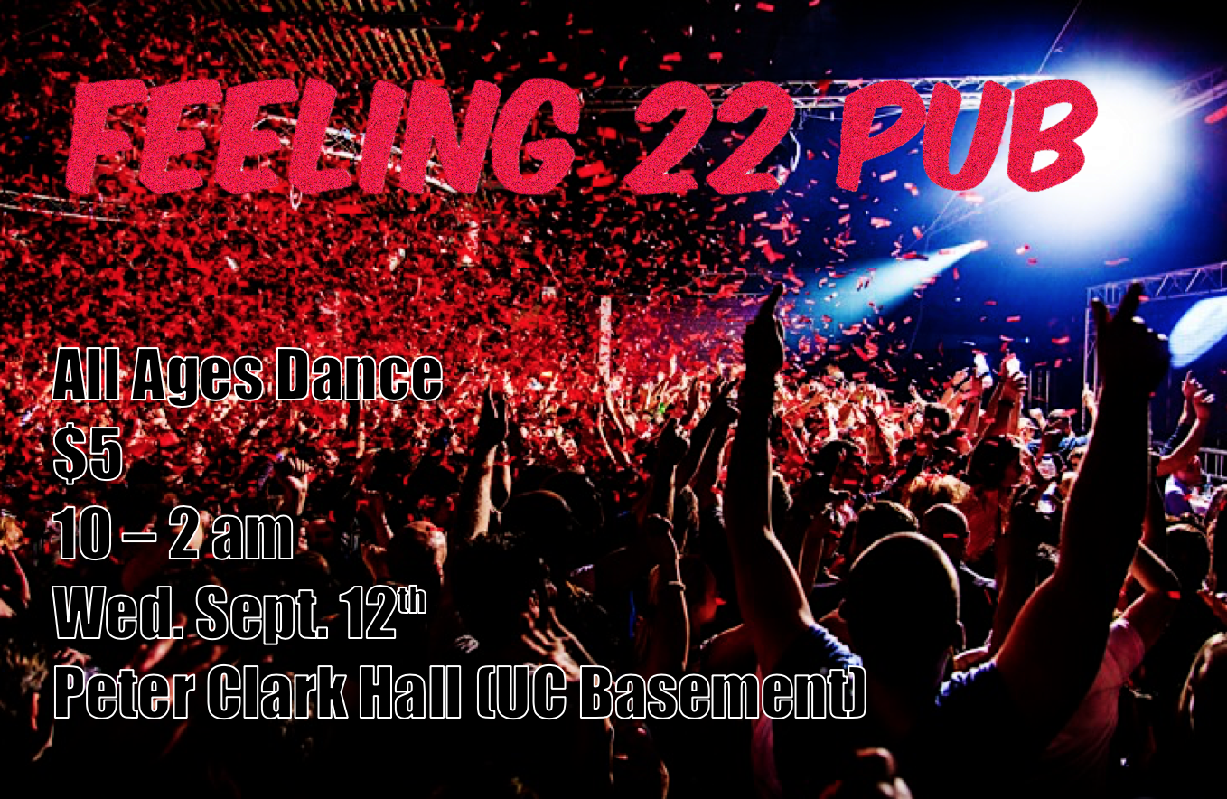 Come on out this Wednesday night from 10pm – 2am for the first pub of the year! This all ages pub will be held in PCH, the basement of the UC. Tickets will be sold at the door up until 1am, on a first come/first serve basis. The theme is “Feeling 22” just remember, Everything will be alright, if we just keep dancing like we’re 22!